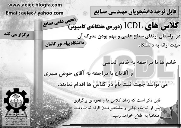 کلاس آموزش ICDL چهارشنبه ها از ساعت 12 الی 15 برگزار میگردد.